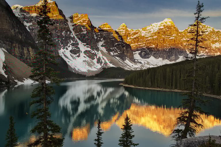 The Canadian Rockies offer one of the most breathtaking journeys in the world, especially along the route from Banff to Jasper and back. Towering peaks, turquoise lakes, and sweeping valleys create a landscape that feels both wild and serene. Explore the charming alpine town of Banff, wander the shores of Lake Louise, and marvel at the immense Columbia Icefield. Continue along the Icefields Parkway, often called one of the most scenic drives on earth, where every turn reveals glaciers, waterfalls, and endless mountain vistas.